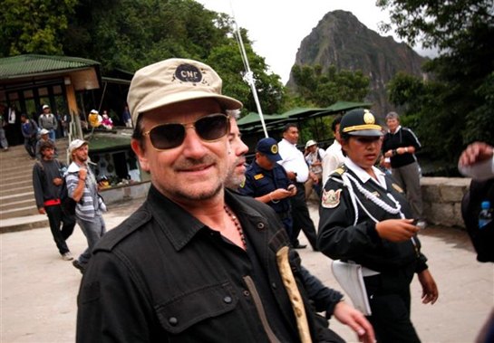 Bono Vox, vocalista da banda inglesa U2, esteve a passeio no Peru. O cantor desembarcou no país com sua família no dia 23 de fevereiro, quinta-feira, e pernoitou na cidade de Lima. Na sexta-feira, Bono, acompanhado da esposa e filhos, seguiu para o Vale Sagrado dos Incas. Na manhã de sábado, o clã foi de trem de Ollantaytambo até Águas Calientes. O passeio pelo país incluiu ainda visitas à famosa Machu Picchu e à cidade de Cuzco.